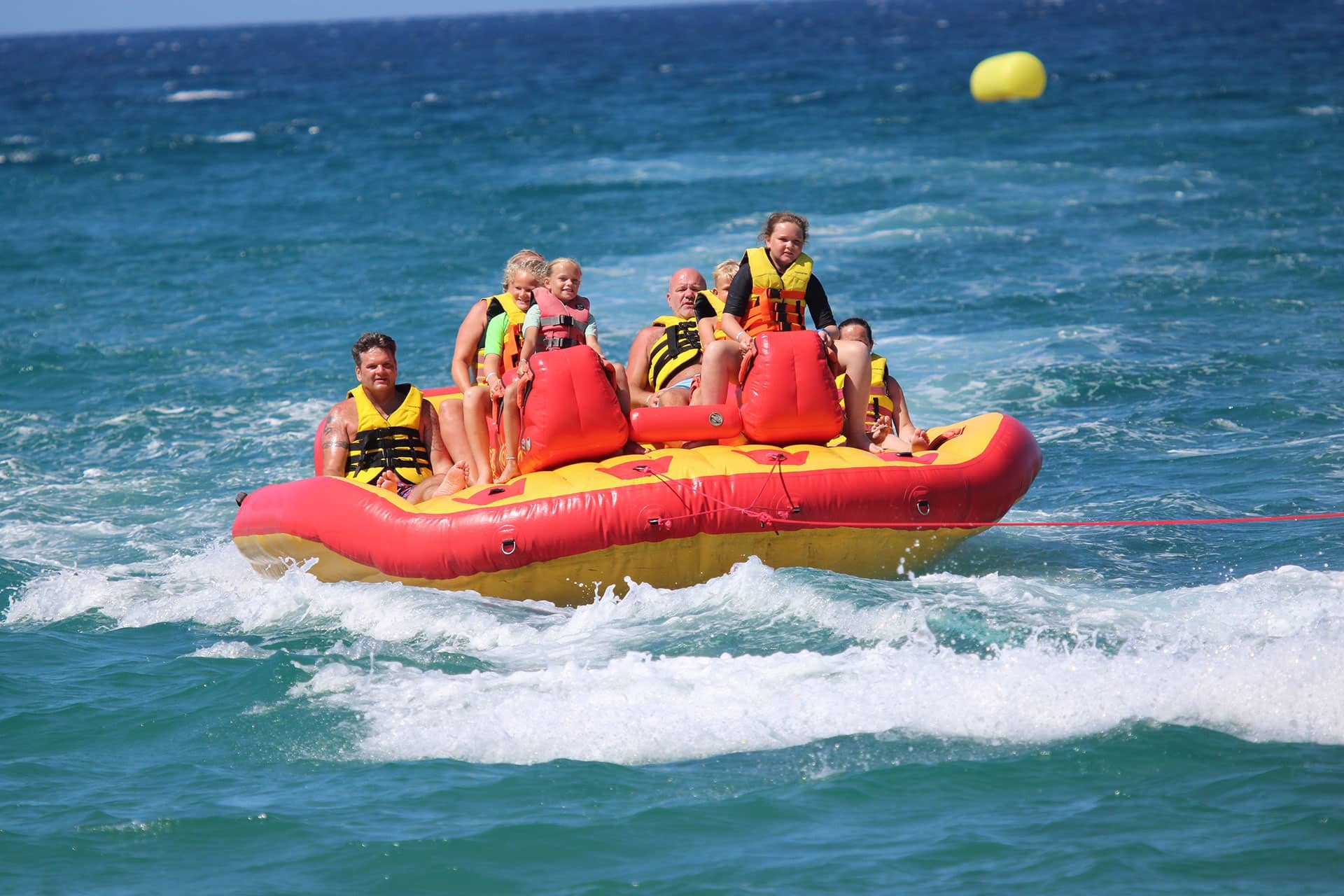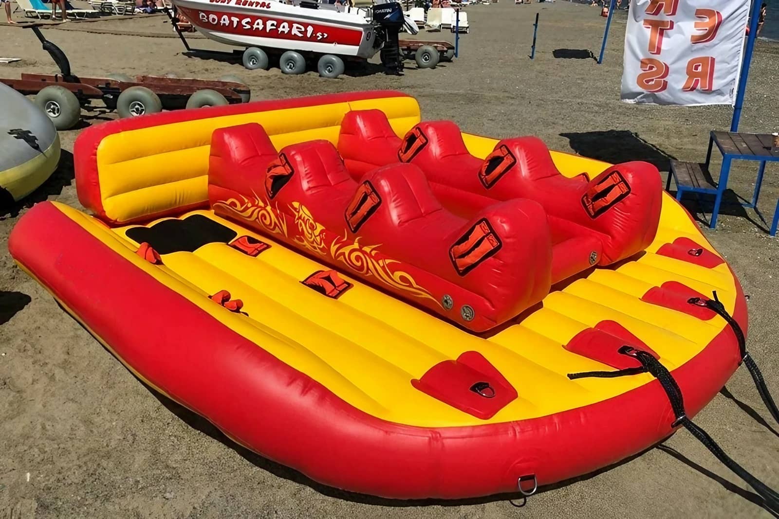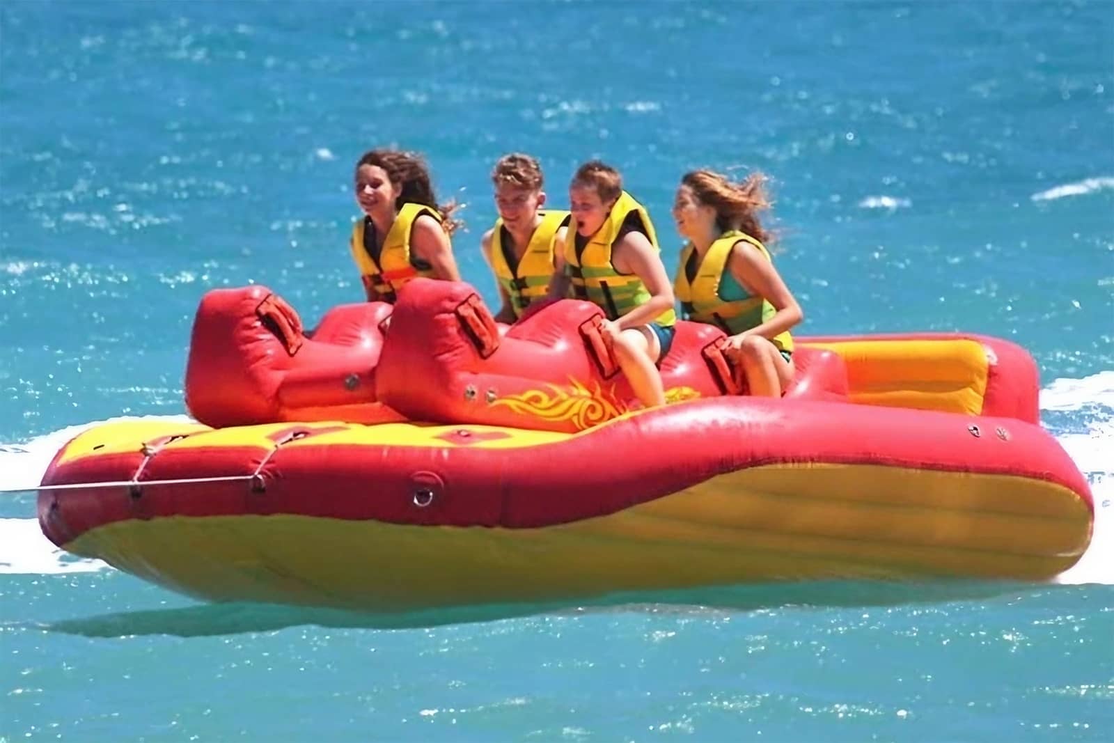 Vive la adrenalina del mar como nunca antes. El clásico bote banana evoluciona en un sofá acuático gigante, diseñado para risas, velocidad y diversión extrema en grupo.