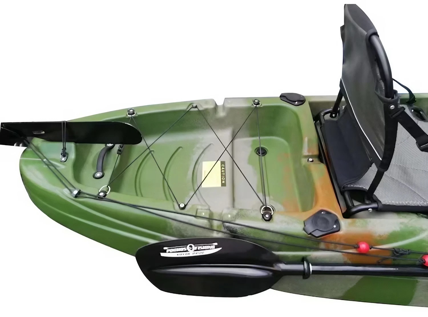 El Kayak de Pesca Raptor presenta una alta estabilidad estabilidad, buen balance para realizar maniobras y una gran capacidad de almacenamiento. Es uno de los mejores kayaks para la pesca, tiene un amplio compartimiento posterior que permite poner toda la pesca del día.