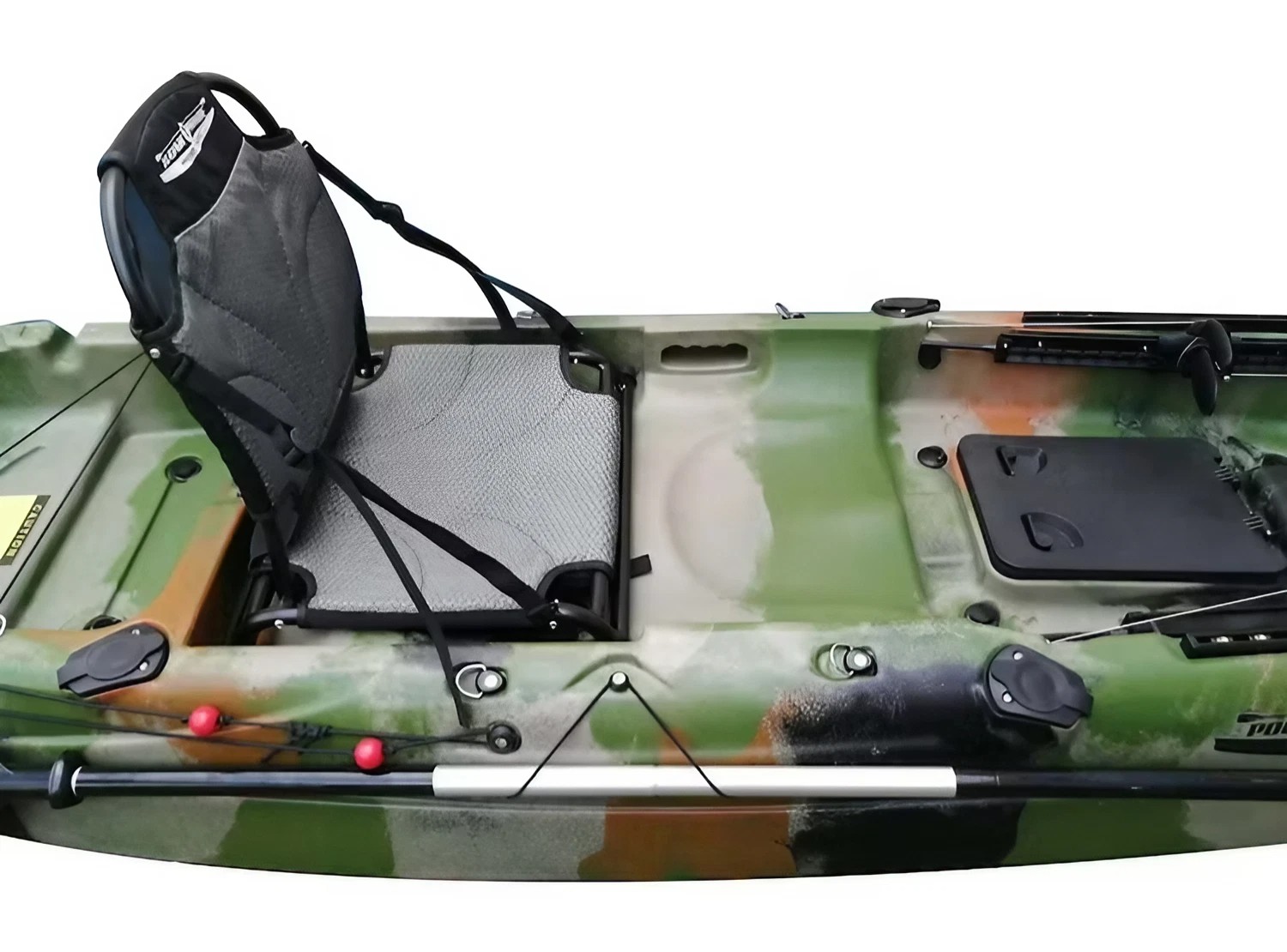 • 4 soportes de caña de pescar dentro del kayak, al ras con tapas.